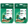 Package Included: 4 Pack Compatible ink for HP Ink 64XL Black and Color Combo Pack (2 Black, 2 Color)