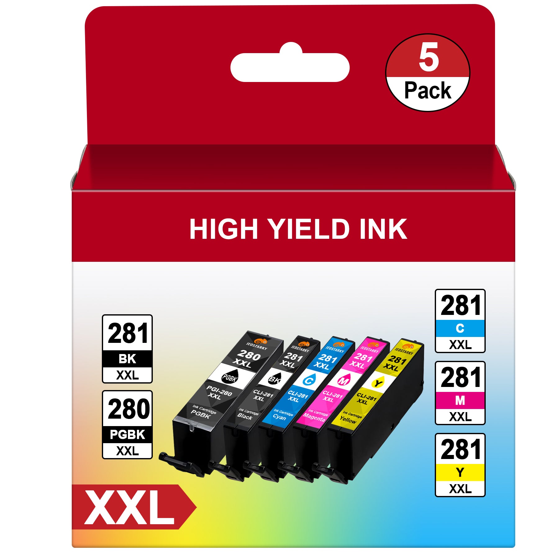 - Package Contents: Jeostarky Compatible for Canon ink 281 include 1 x Large Black PGI-280XXL, 1 x Small Black CLI-281XXL, 1 x Cyan CLI-281XXL, 1 x Magenta CLI-281XXL, 1 x Yellow CLI-281XXL, Total 5 Pack (NOT Include Photo Blue)